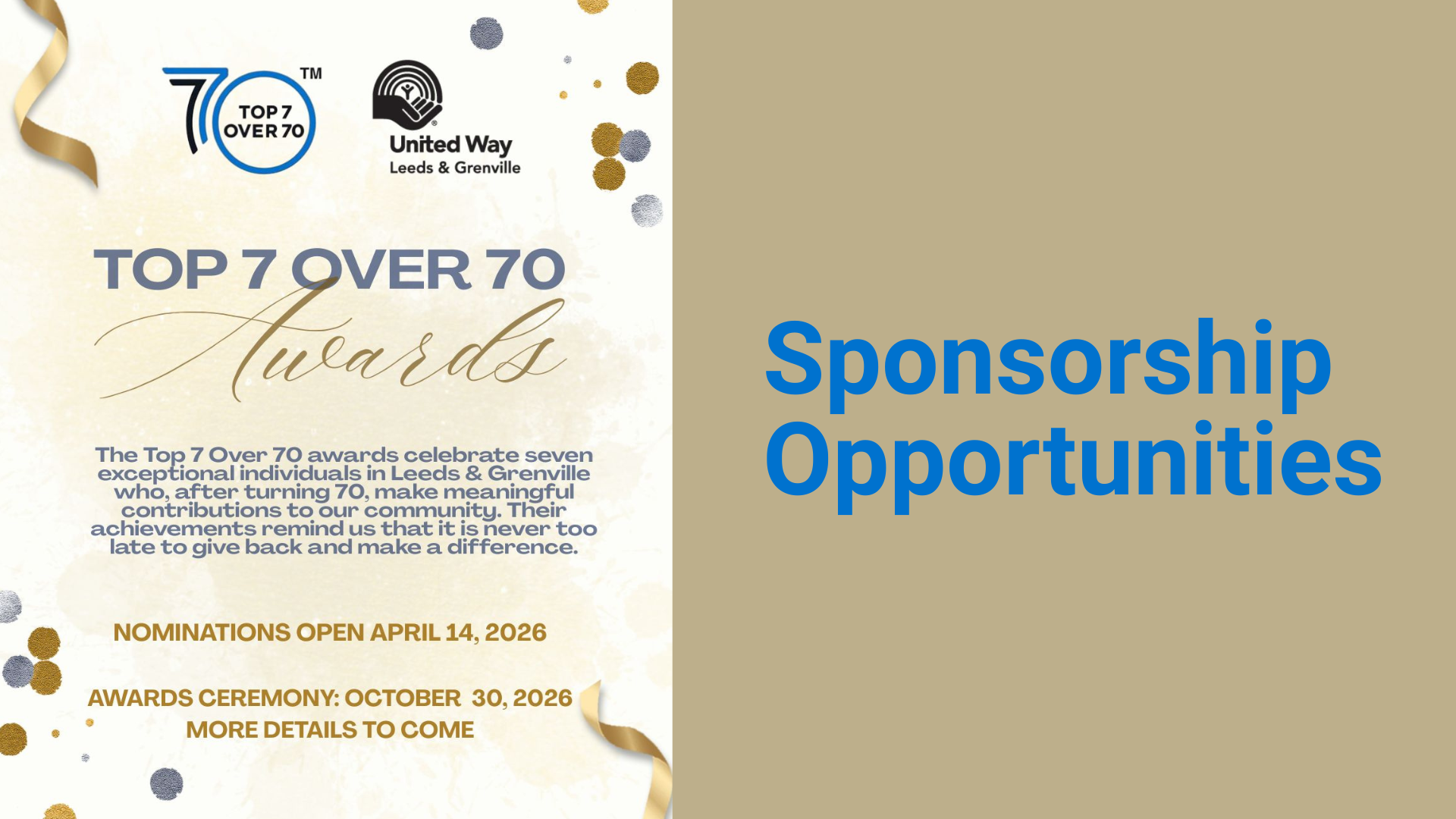 Funds raised through the Top 7 Over 70 event will support the work of United Way Leeds & Grenville, helping strengthen programs and services that improve lives across our region.